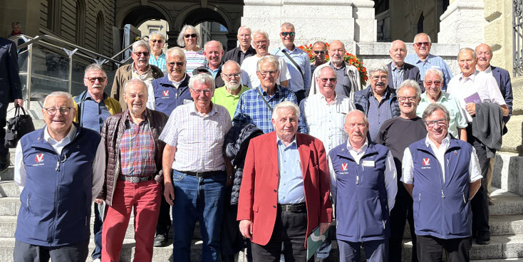 (wim) Eine stattliche Anzahl der Eidgenössischen Turnveteranen, Gruppe Aarau (besonders verdiente Turnerinnen und Turner aus den Bezirken Aarau, Kulm, Lenzburg und Zofingen) besuchte kürzlich die Herbstsession der Eidgenössischen Räte im Bundeshaus in Bern. Organisiert hatte der Ausflug das Vorstandsmitglied Martin Widmer (Unterkulm). Nach einer umfassenden Sicherheitskontrolle konnte der Ratsbetrieb von der Tribüne aus verfolgt werden. Anschliessend wurde die Besuchergruppe durch den Aargauer Nationalrat Christoph Riner empfangen. In einem Kommissionszimmer konnten Fragen gestellt werden, die durch den Gastgeber kompetent beantwortet wurden. Ein vorzügliches Herbstmenü im Bundeshaus-Restaurant «Galerie des Alpes» schloss den Besuch der Besucher ab. Obwohl sie gleichzeitig eine Delegation des polnischen Parlaments zu betreuen hatte, liess es sich Nationalratspräsidentin Maja Riniker nicht nehmen, die Besucher aus «ihrem» Kanton Aargau in der «Galerie des Alpes» persönlich zu begrüssen. Am späteren Nachmittag ging es dann mit dem Car via Emmental zurück in den Aargau.